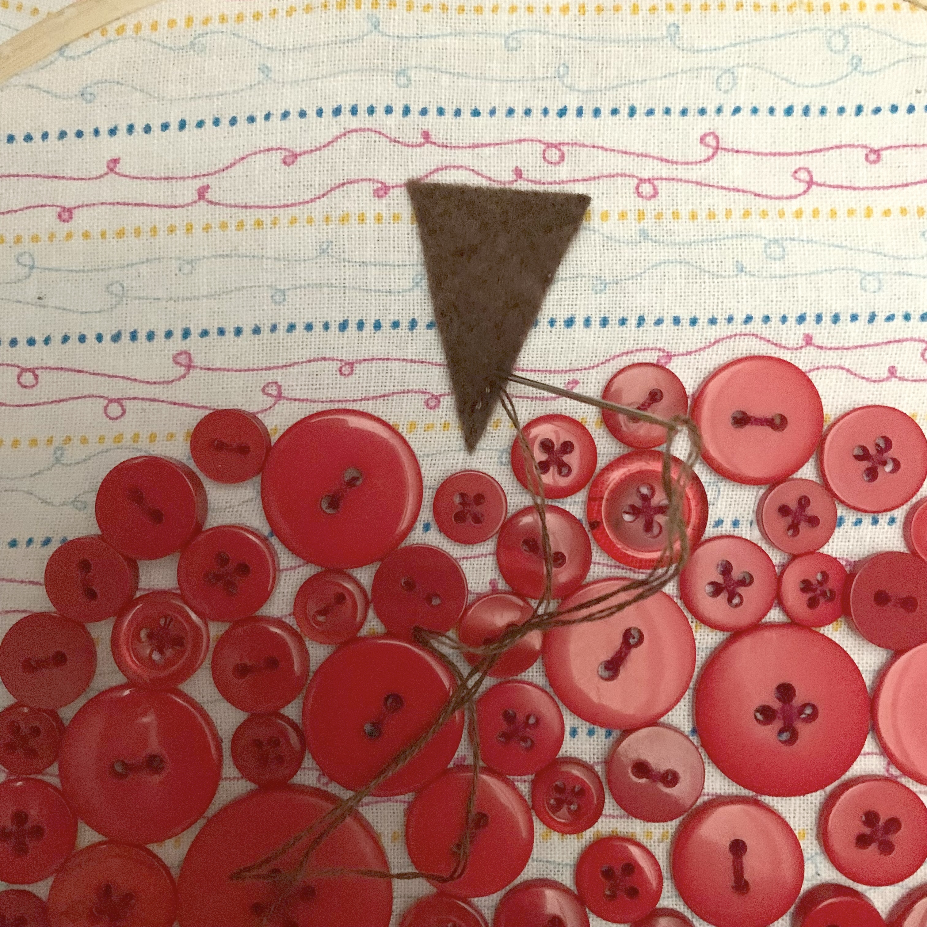 - Red sewing thread for attaching the buttons.