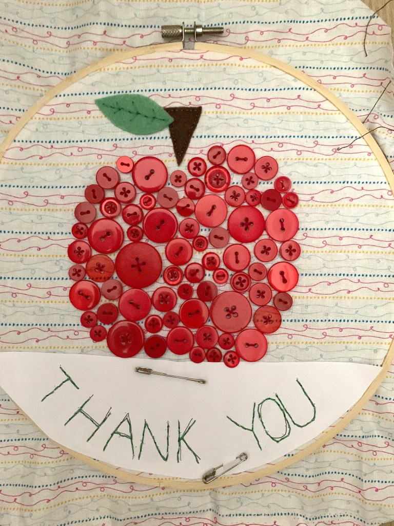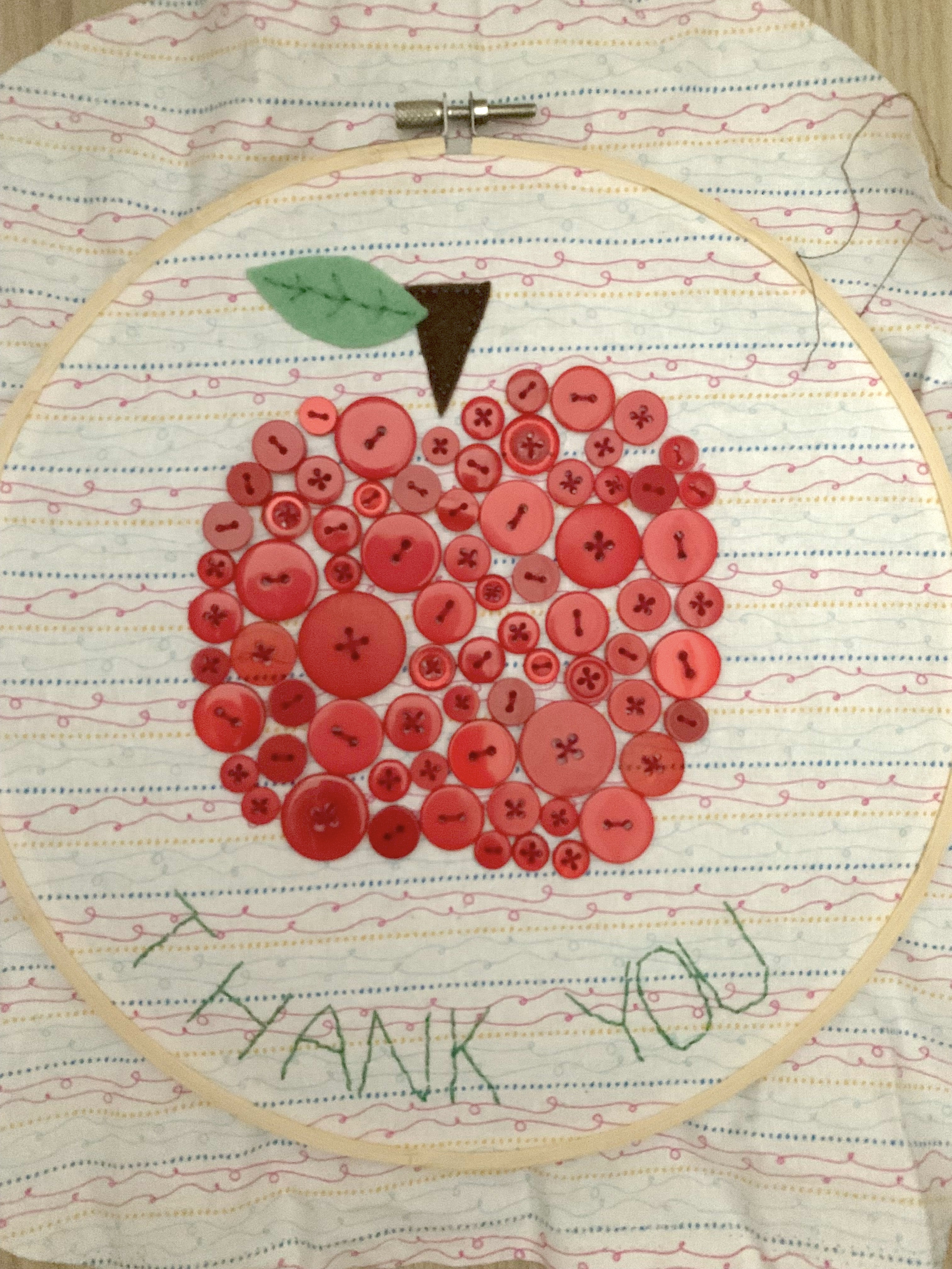 Sewing Tutorial: Thank You Apple Themed Button Detail Embroidery Hoop