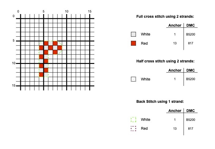You can choose to outline these Christmas candy canes in red or white thread when completing the backstitch.