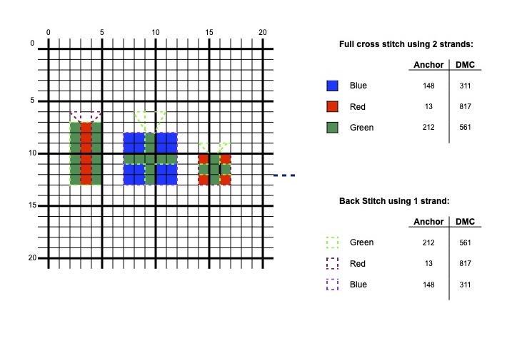 These make great little gift tags, and are ideal for adding extra details to a cross stitch themed Christmas project. You can use the colours shown or choose you own based on your or the recipients favourite colours.