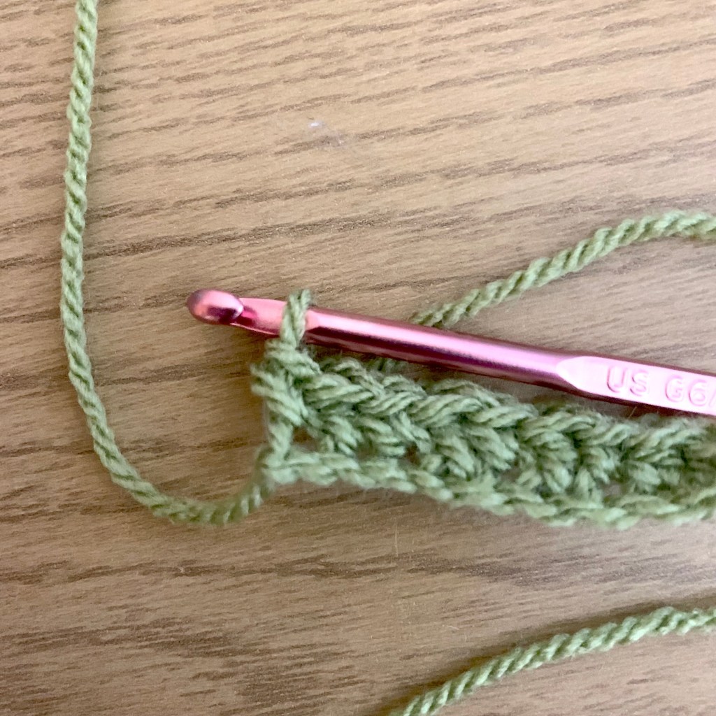 Row 1: ch101, sc into 2nd ch from the hook, *htr(UK)/hdc(US) into next stitch, sc into next stitch. Repeat from * along row. Once at the final stitch of the row complete the final htr(UK)/hdc(US) then sc into the same stitch,