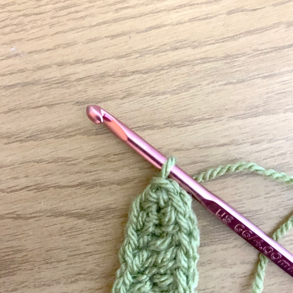 Next working down the reverse side of the chain complete htr(UK/hdc(US) into the same stitch. *sc into next stitch, htr(UK)/hdc(US) into next stitch. Repeat from * along row. complete an additional sc into the final stitch, then ss into 1st sc of the starting row.