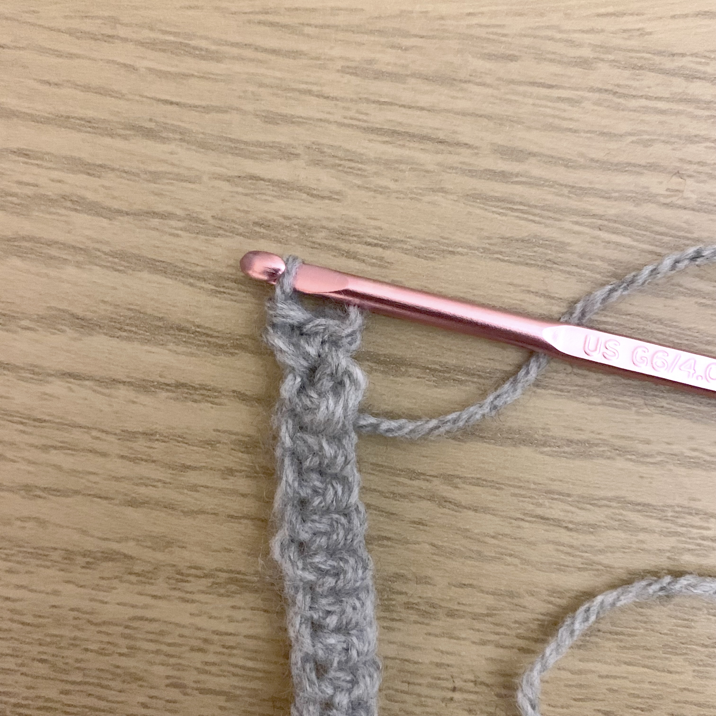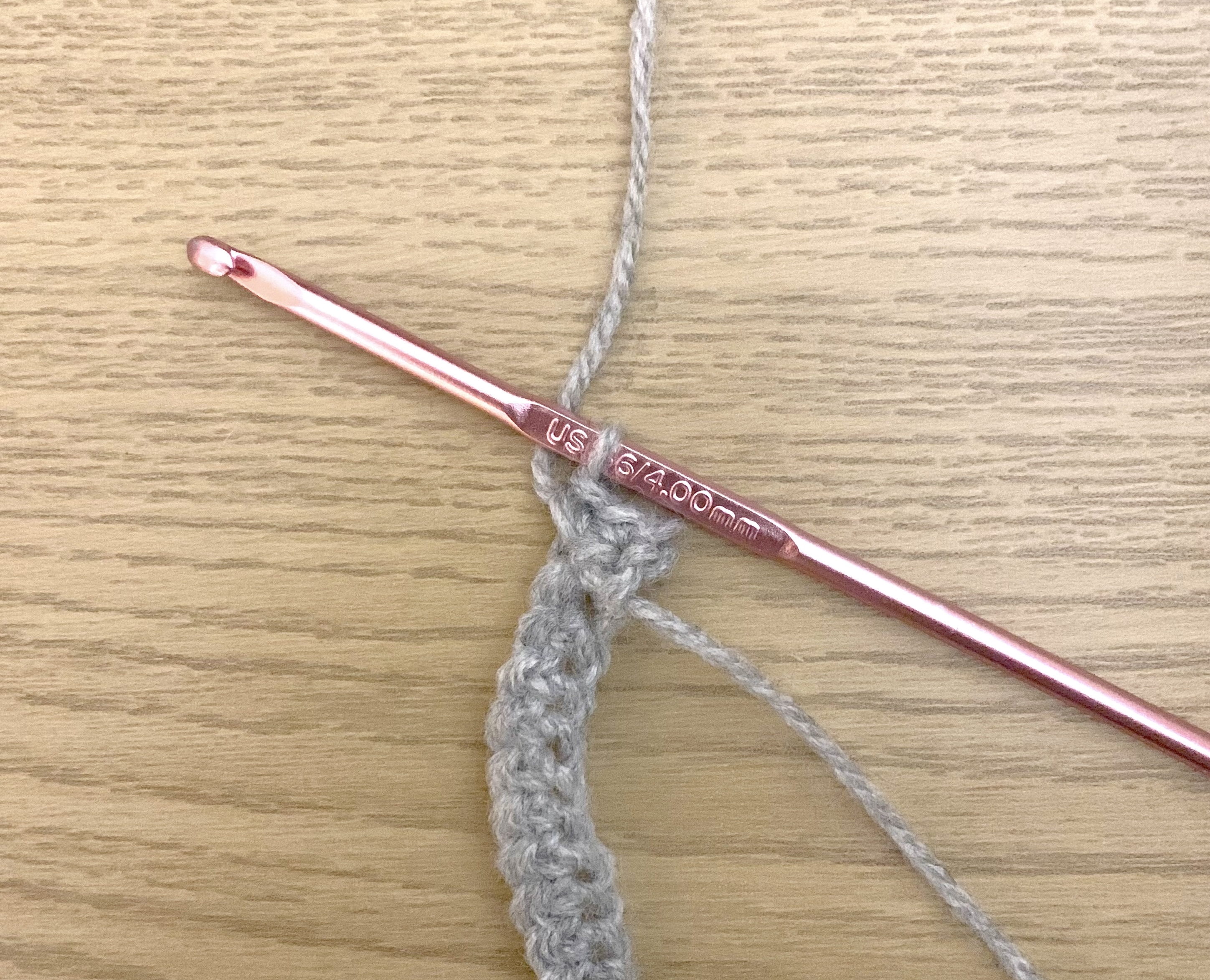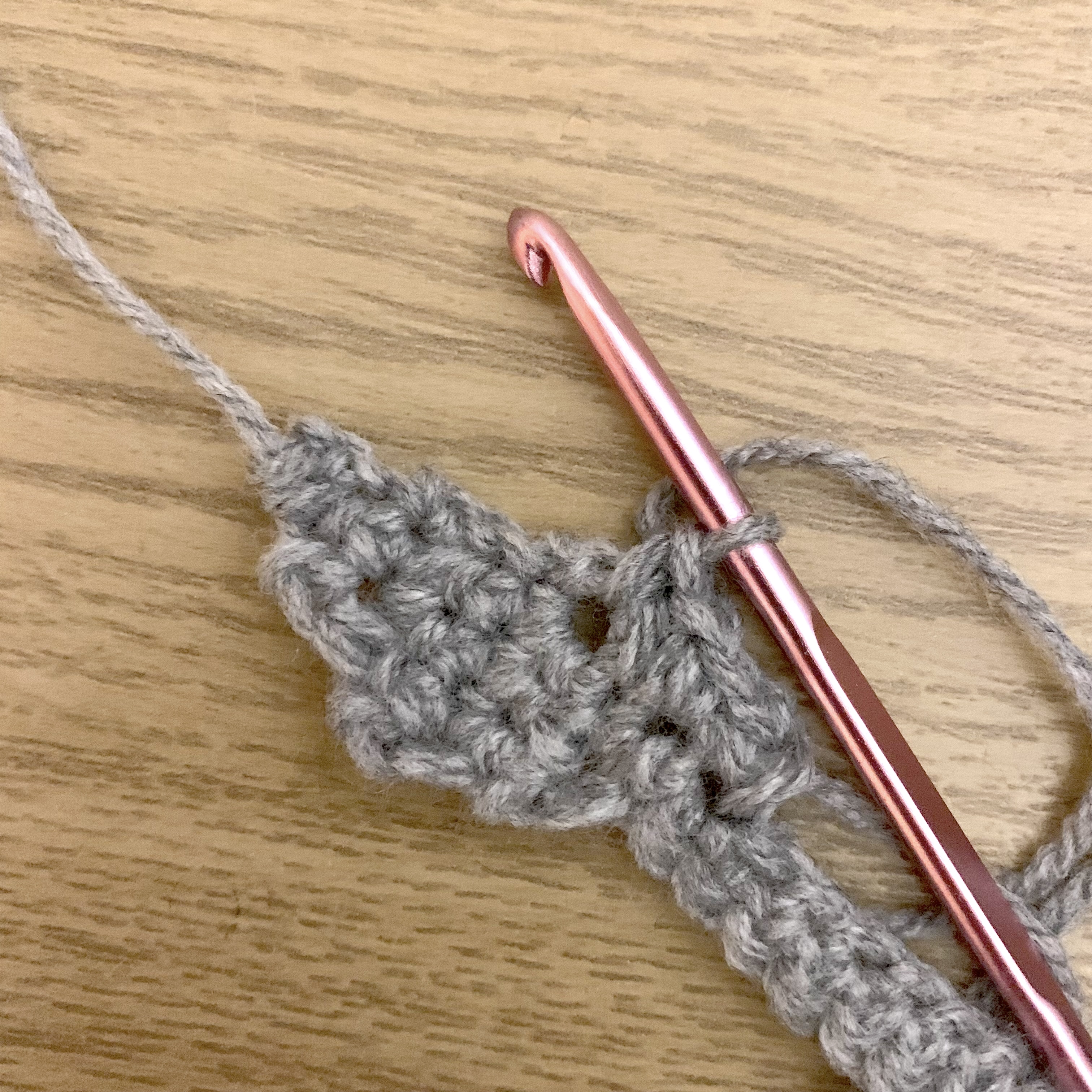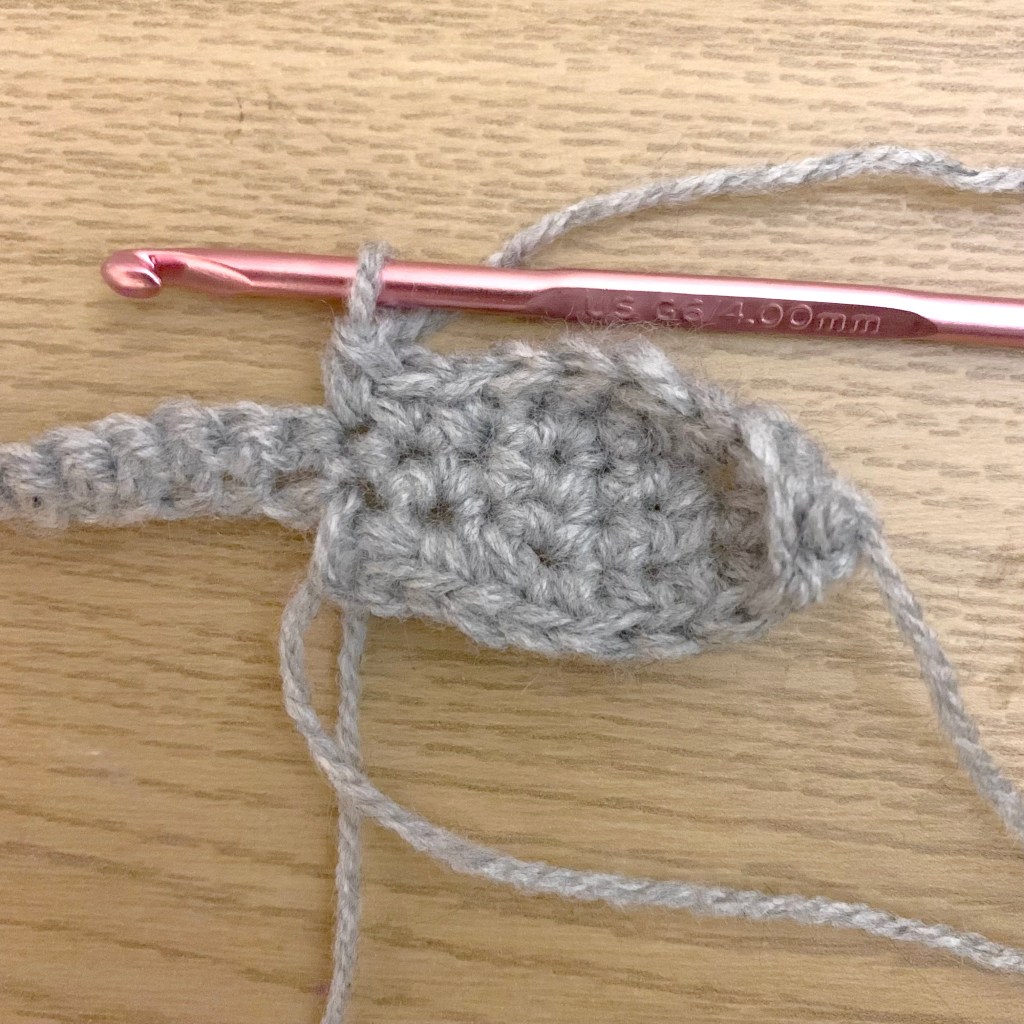 Using grey wool and a 4mm hook.