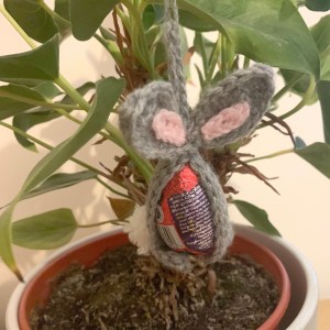 I recently made some crochet Easter Rabbit creme egg covers/holders for some Easter gifts and after I had made a few in different colours had a thought – why not also make a hanging decoration version too, you could fill a wooden tree stand with these little crochet Easter rabbit egg covers/holders all in different colours – it would look great as an Easter decoration or as a display for an Easter party. I need to make a few more to fill a tree with them but I’m hoping I might have enough time before easter to give it a try.