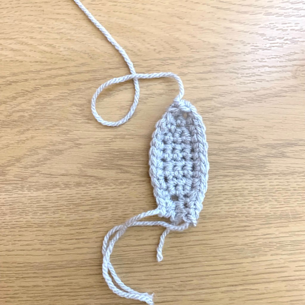 Cast on in bottom right of ear (pull up loop, ch, sc into same stitch) then sc around the edge of the ear (stitches going into the end of the rows).