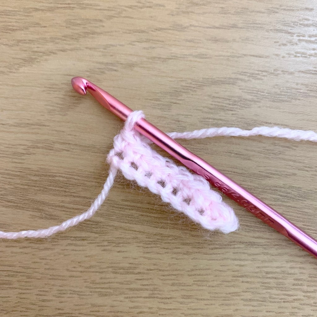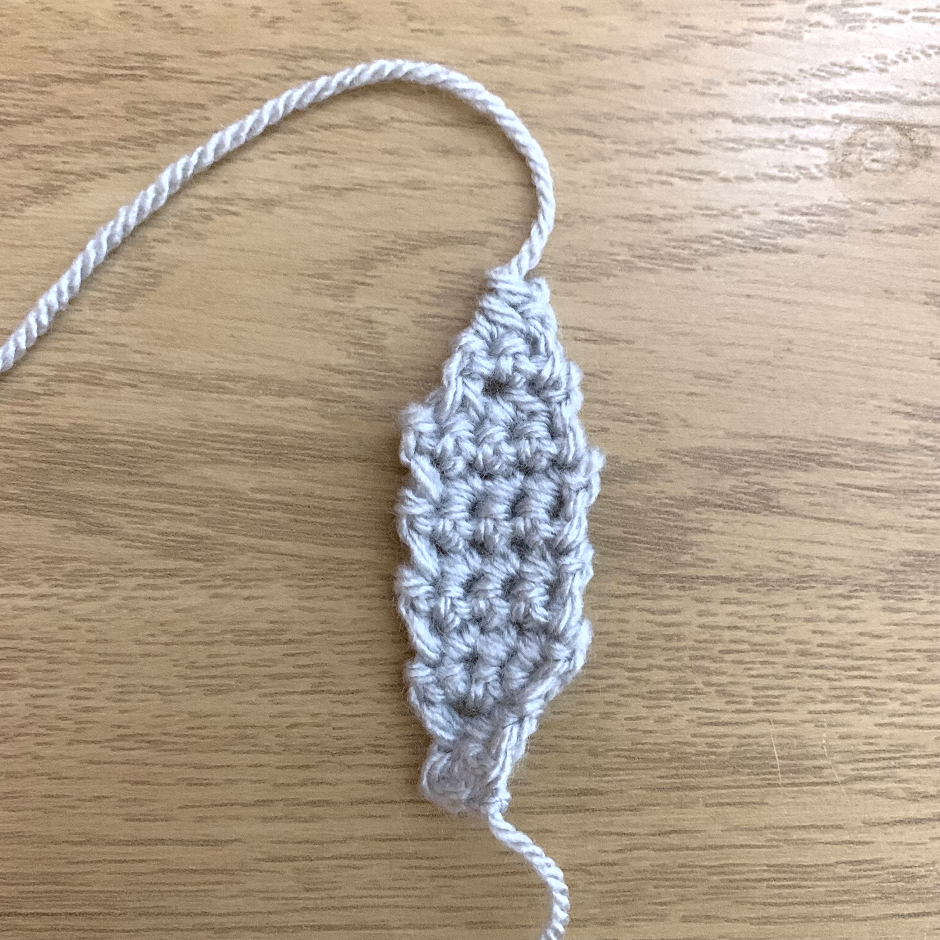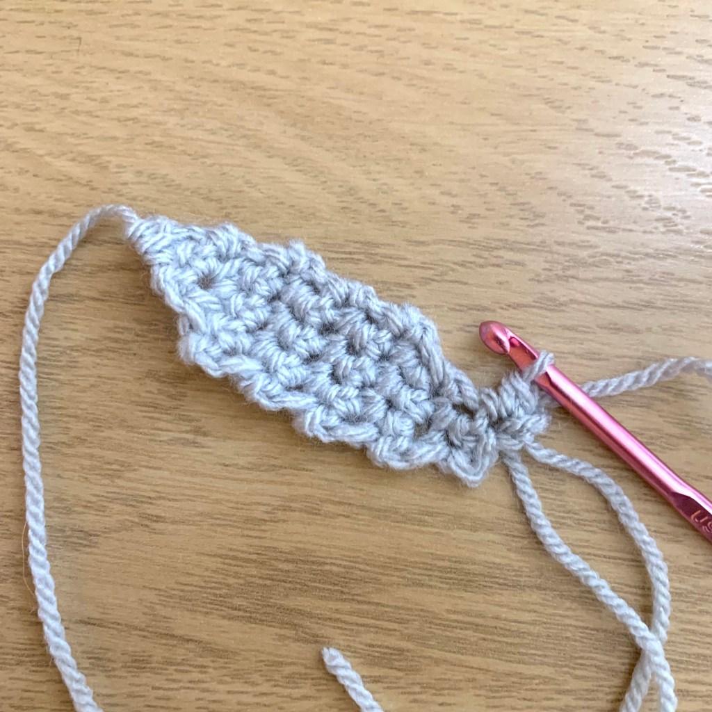 Row 11: ch1 (doesn’t count as a stitch) 2sc.