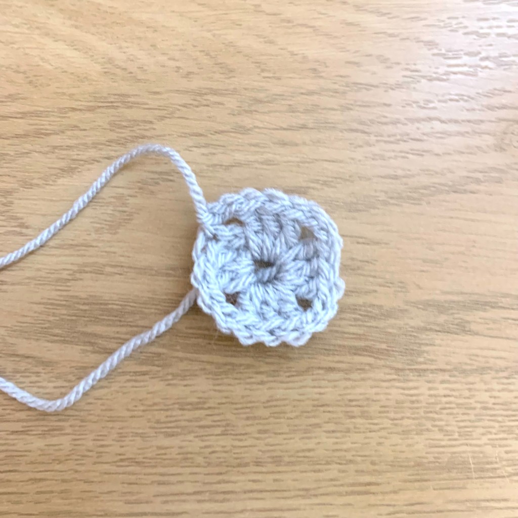 Row 3: ch1 (doesn’t count as a stitch) 2sc into next stitch x2 (4)