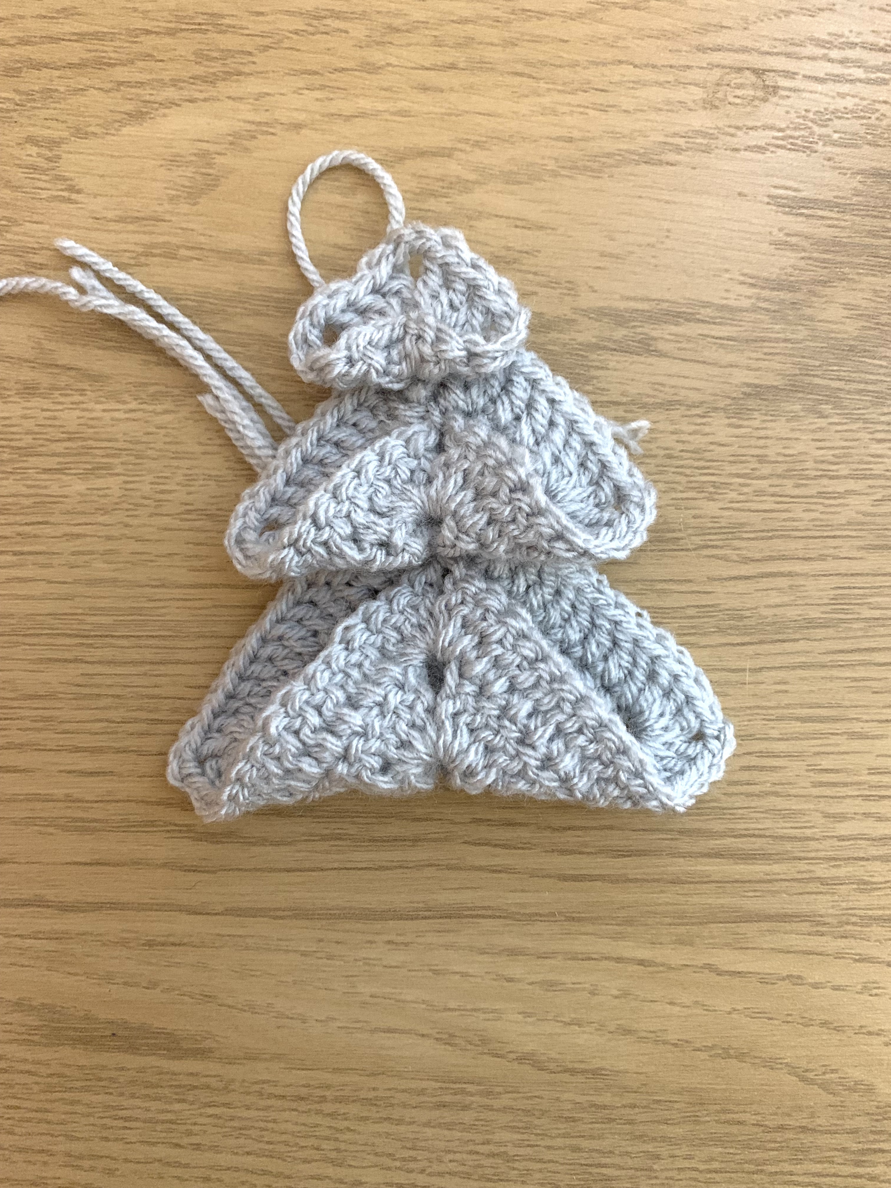 Row 10: ch1 (doesn’t count as a stitch) sc2tog x2 (2).