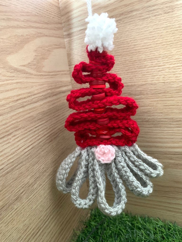 Folded Crochet Ribbon Santa Christmas Decoration With Button Details