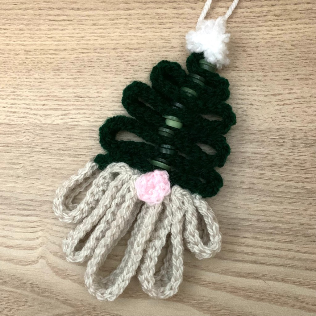 Folded Crochet Ribbon Gnome Christmas Decoration With Button Details