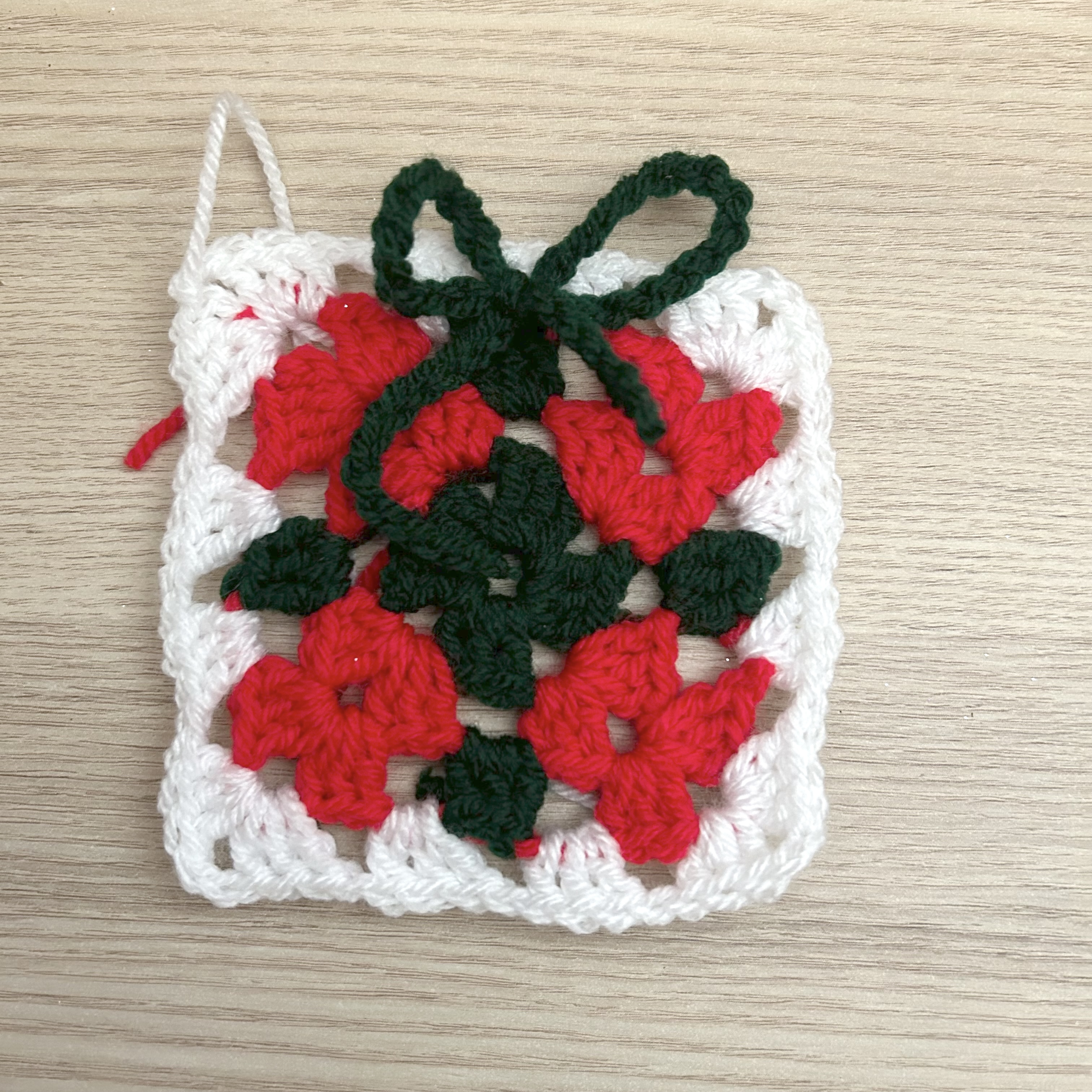 First up in the crochet granny squares Christmas series is a present themed granny square, complete with bow!